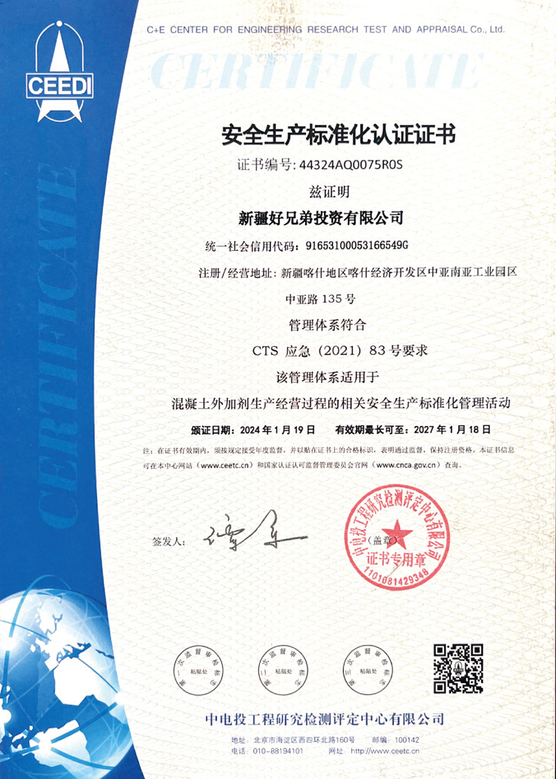 12种外加剂产品系列、300吨聚羧酸固定仓储量、20000吨聚羧酸母体生产能力。